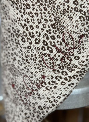 ★ Écharpe léopard beige & marron – velours côtelé – fait main