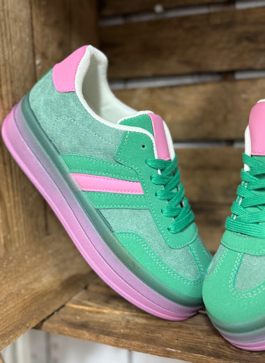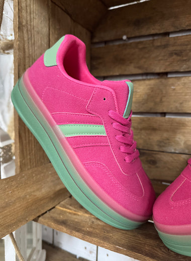 ★ Baskets Framboise & Vert – Semelle Épaisse & Style Tendance