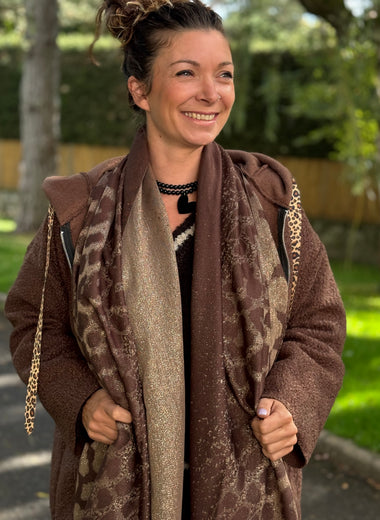Écharpe velours léopard taupe ★ Fait main en Haute-Loire