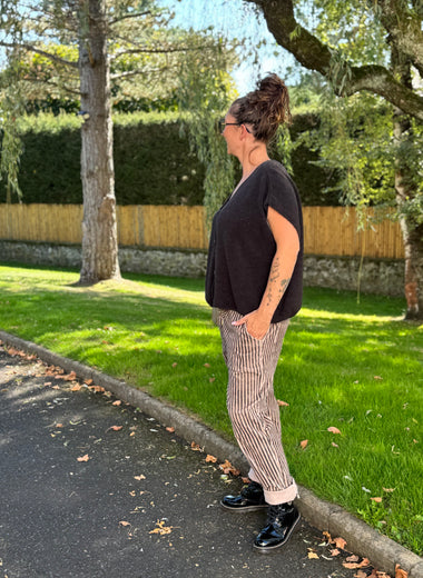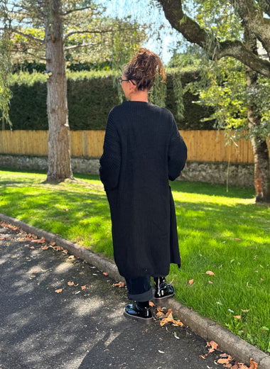 Gilet long maille poches manches bouffantes – Noir ou Marron – TU jusqu’au 48