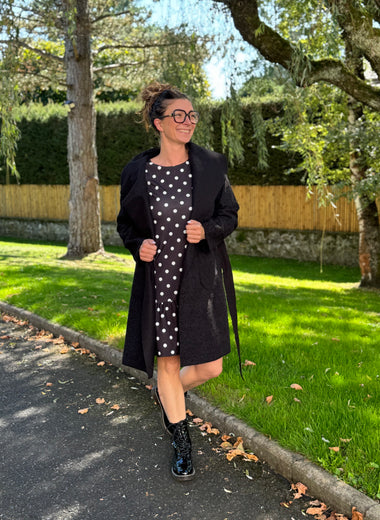 Manteau ceinturé en laine bouillie – Noir ou marron – Taille unique jusqu’au 44