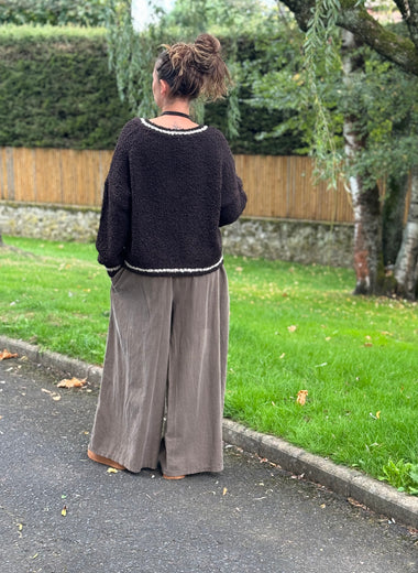Pantalon large velours côtelé – Taille unique jusqu’au 46 – Taupe ou chocolat 🖤