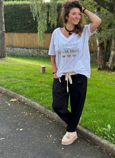★ T-shirt blanc « L’amour c’est moi » – Taille unique jusqu’au 48