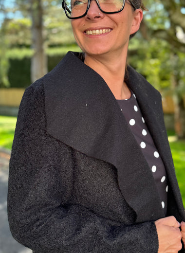 Manteau ceinturé en laine bouillie – Noir ou marron – Taille unique jusqu’au 44