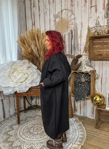 Manteau long oversize noir – Loulou l’Étoile ★ Made in Italy