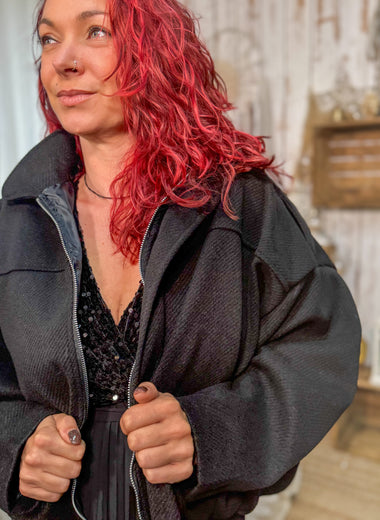 Manteau en laine bouillie zippé avec capuche – Loulou l’Étoile ★ Made in Italy