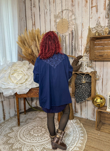 ★ Blazer bleu marine – Chic avec une touche dentelle