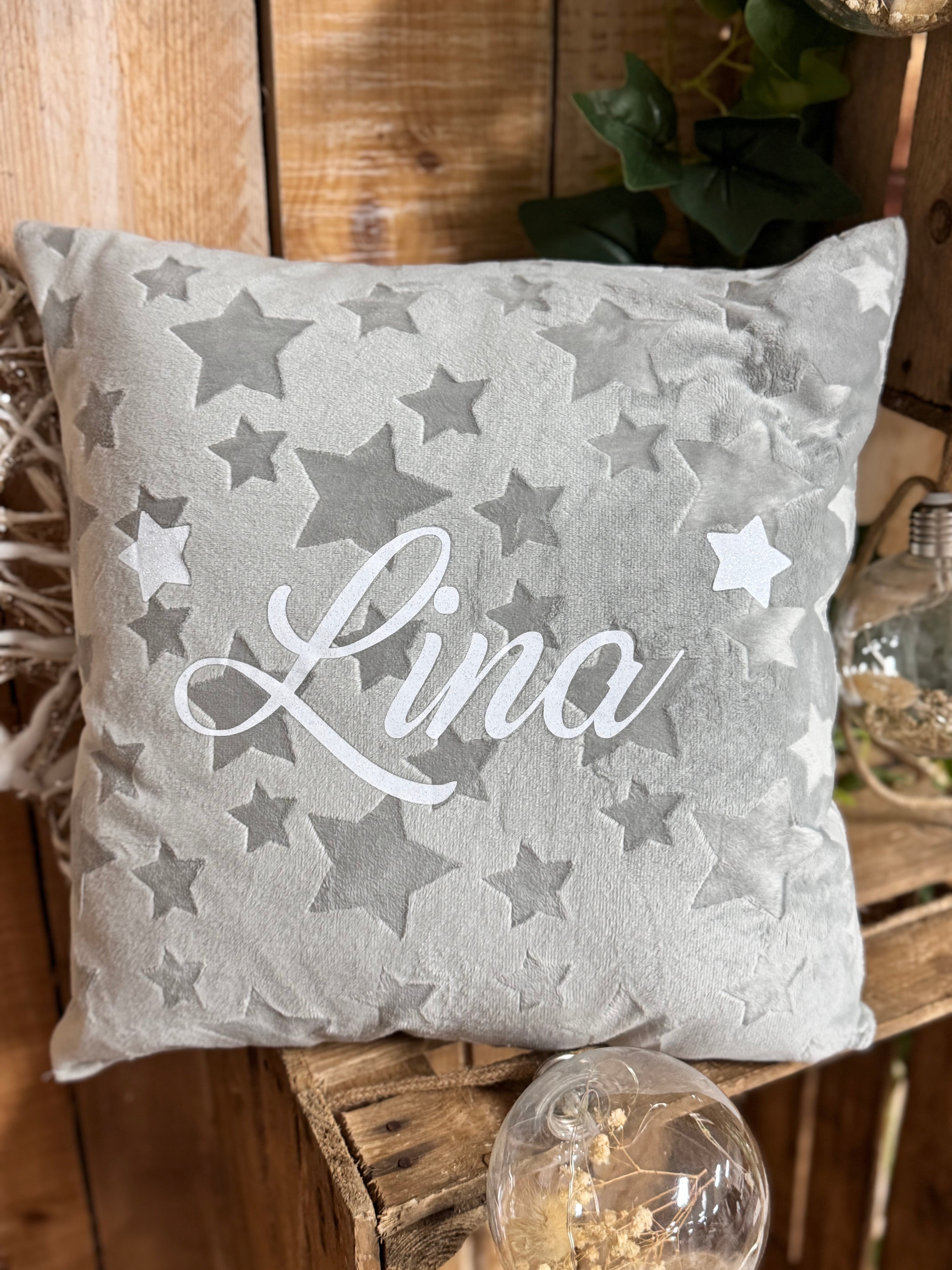 Ce coussin Minky tout doux est fabriqué à la main dans notre atelier en France par Loulou l’Étoile et peut être personnalisé avec le prénom de votre choix ✨