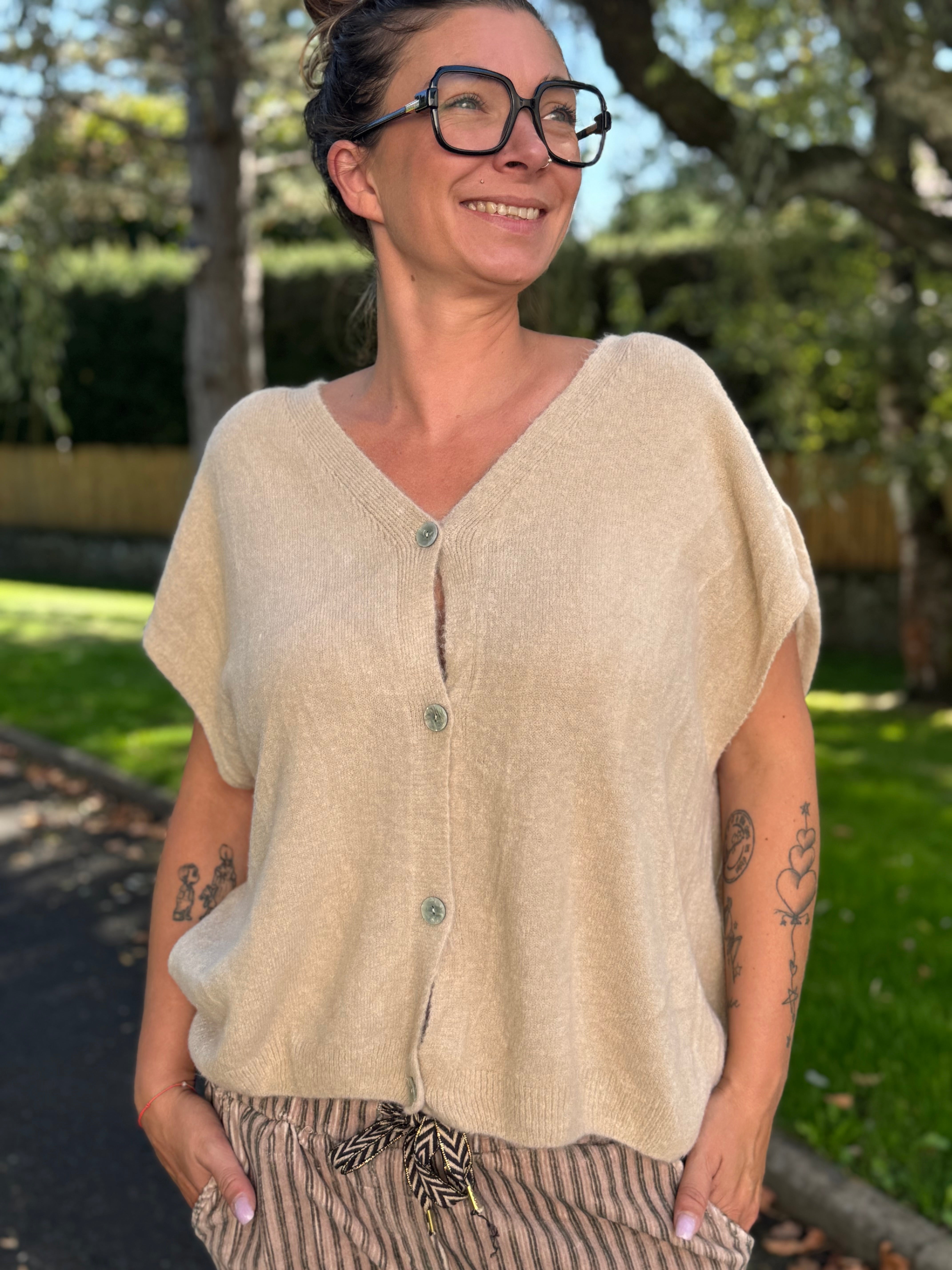 Gilet sans manches – Beige, gris chiné – Taille unique jusqu’au 48