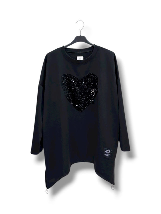 Ce ★ pull oversize est un vrai coup de cœur ! Avec sa coupe un peu plus longue sur les côtés, il apporte un tombé fluide et moderne à toutes les silhouettes. Son grand cœur en velours à sequins au centre ajoute la touche brillante parfaite. Ce ★ pull est doux, confortable, et stylé à souhait, à enfiler pour illuminer ton quotidien. Taille unique jusqu’au 52, il deviendra vite ton ★ pull chouchou de la saison !