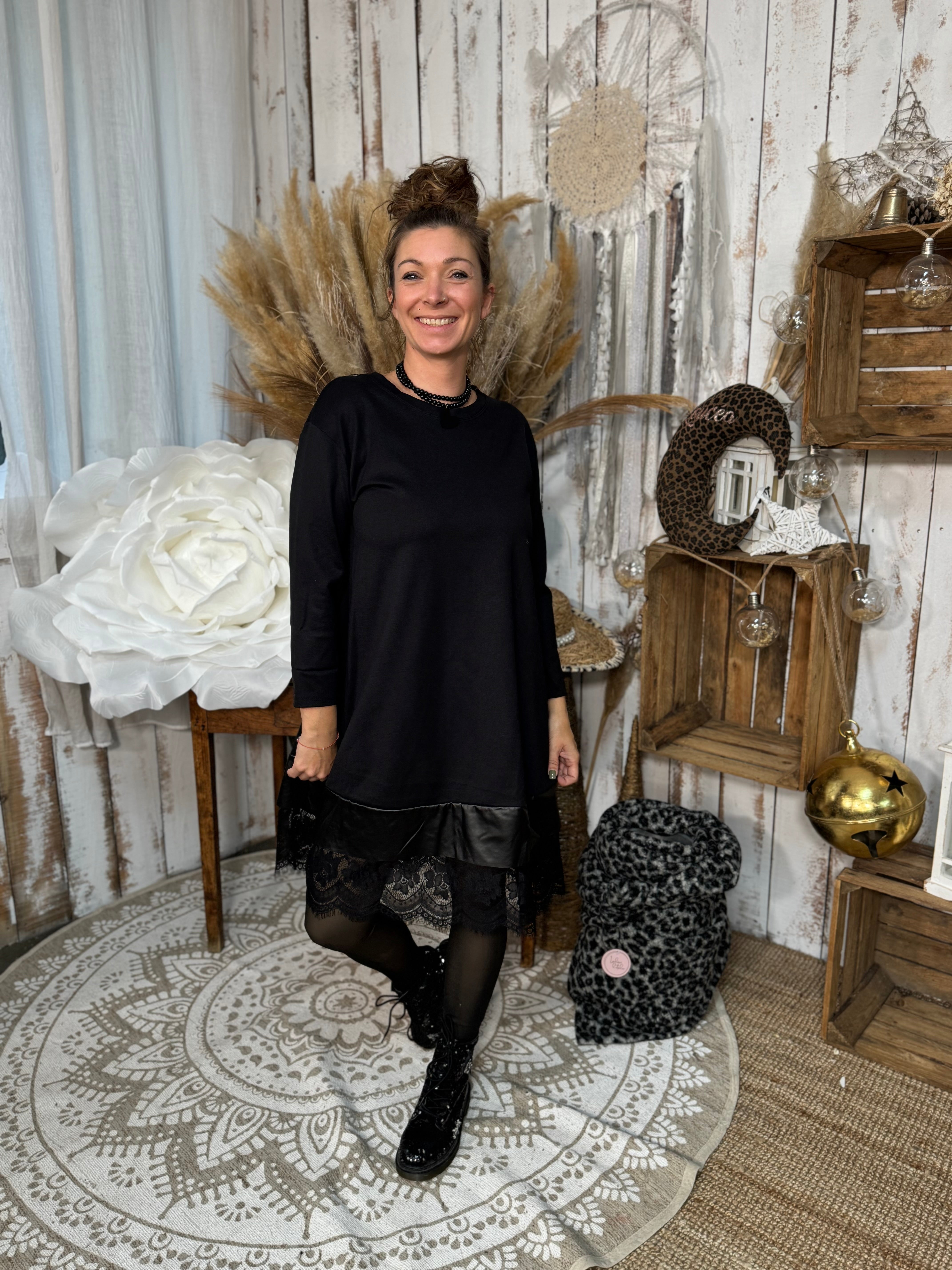 Sa coupe ample et fluide s’adapte à toutes les morphologies jusqu’au 44, et son détail en dentelle au bas ajoute une touche ultra féminine 💃